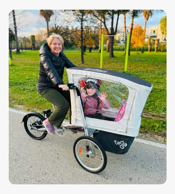 Con il Tettuccio Reale usiamo la Taga anche quando piove forte. I bambini restano asciutti e tranquilli, senza correnti d’aria
