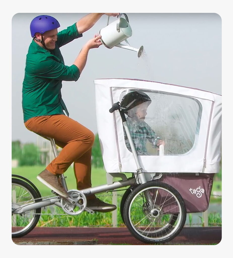 Protegge sia dalla pioggia sia dal vento, creando uno spazio riparato per i bambini durante il tragitto.